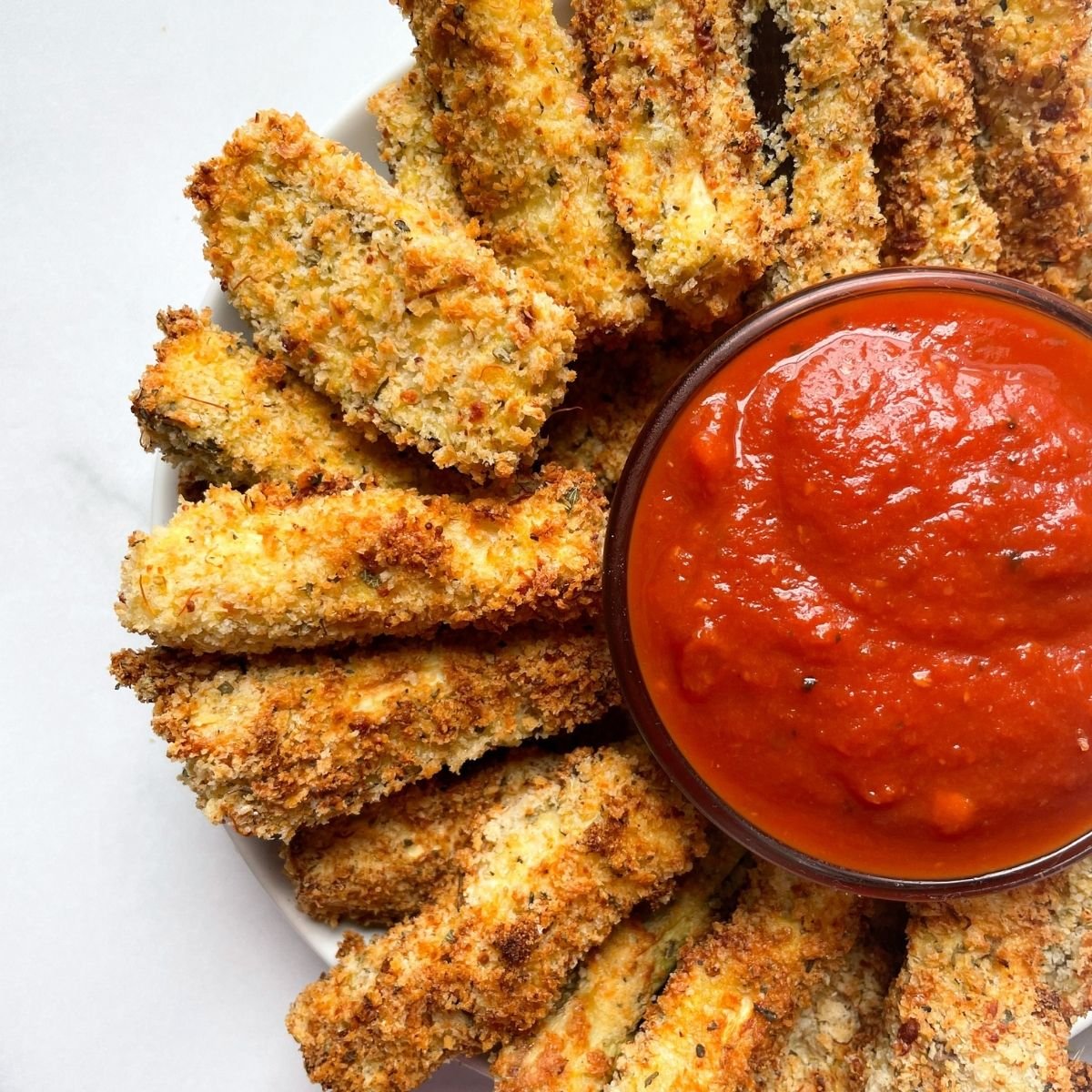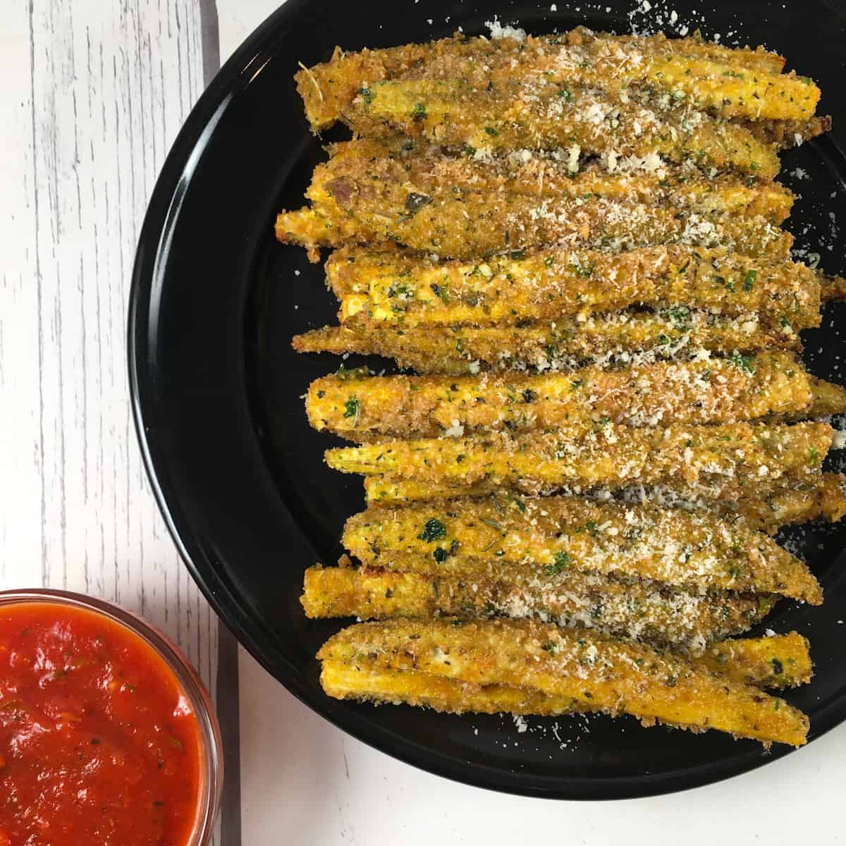 Air Fryer Eggplant Parmesan Fries are both crispy and healthy. The fries are coated with gluten-free panko bread crumbs and almond flour.